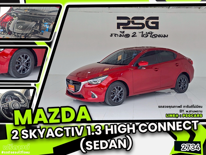 Mazda 2 Skyactiv 1.3 High Connect (Sedan) เกียร์ออโต้ ปี2018 สีแดง